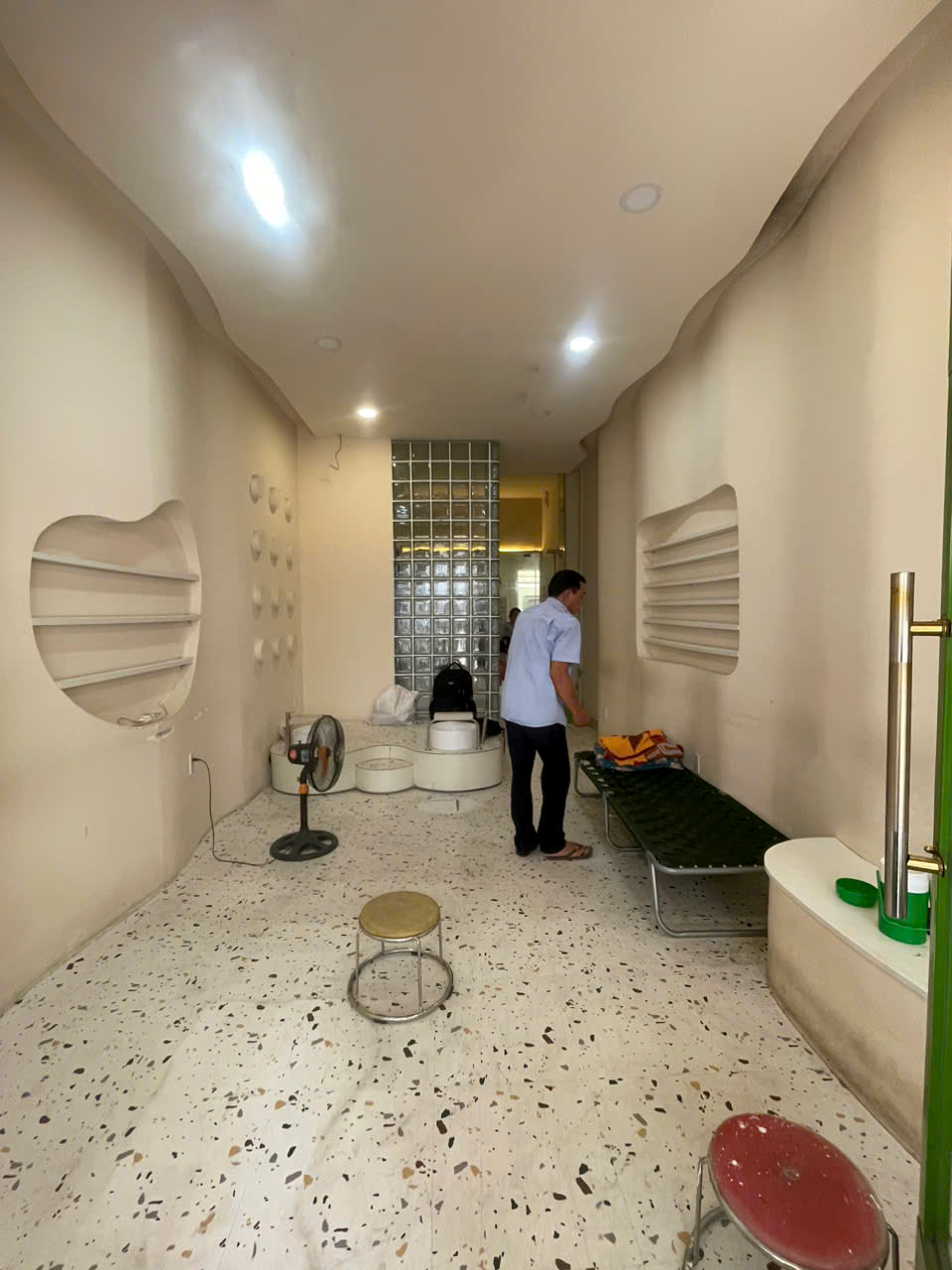 hiện trạng sẽ có đội điện nước sơn tường làm hoàn thiện, xưởng gỗ tập trung làm quầy kệ theo hồ sơ thiết kế.